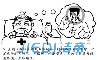 6、直到大病临头四处求医问药也挽救不了自己的生命,也不愿平时多预防、多锻炼、均衡营养,因为觉得天天做保健,太麻烦了。
