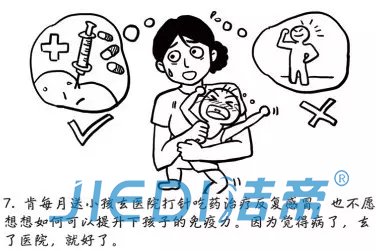 7、肯每月送小孩去医院打针吃药治疗反复感冒,也不愿想想如何可以提升下孩子的免疫力,因为觉得病了,去了医院,就好了。