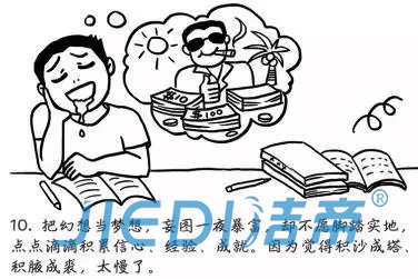 10、把幻想当梦想,妄图一夜暴富,却不愿脚踏实地,点点滴滴积累信心、经验、成就,因为觉得积沙成塔、集腋成裘,太慢了。